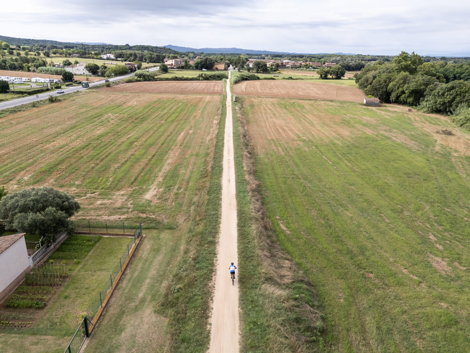 Sortida de la Plaça dels Països Catalans. També es pot creuar Girona pel barri vell i pel costat del riu Onyar, seguint les indicacions dels carrils bici.